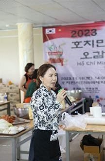 호치민한인여성회 이원자 회장은 “김치를 베트남인과 한국인이 함께 만들어 나누는 행사를 열게 돼 기쁘며 도움을 주신 여러분들께 감사드린다”는 인사말을 전했다.