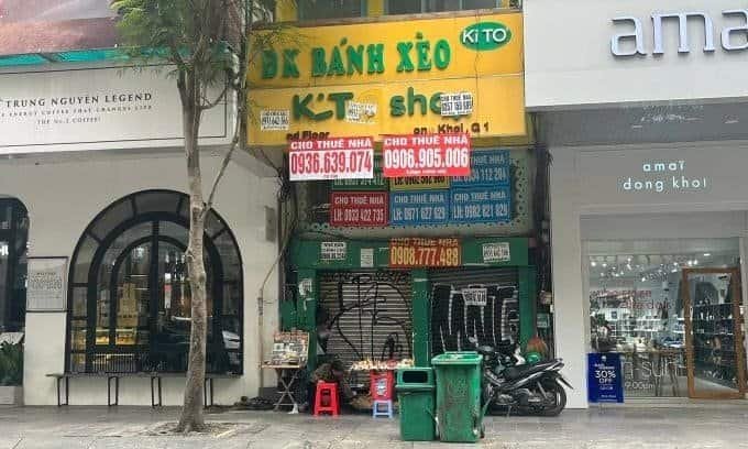 거리를 따라, 특히 리투쫑 거리와 톤득탕 거리 사이의 구간에서는 수십 개의 건물에 “임대 중”이라는 간판을 볼 수 있다.
