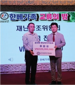 호치민한베가족협회는 호치민시한국국제학교 건축기금 일억동과 베트남 재난상조위원회 후원금 이천만동을 전달하였다.