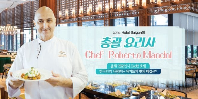 로베르토 만치니 쉐프는 베트남에서 지난 11년간, 인터콘티넨털 사이공, 인터콘티넨털 푸꾸옥, 그리고 풀먼 사이공의 총괄 쉐프로 근무했으며, 지난 30년간 유럽, 아시아 각지에서 근무하여 호텔업계에서는 명성이 높은 요리사다. 유연함과 계절성을 중요시한다는 그는, 뷔페에서는 다양성을 강조하지만 음식의 순수함과 정통성이 오염되는 것을 싫어하는 이탈리아인 답게 이탈리아 음식에서 전통의 연장과 진정한 이탈리안 다이닝 경험을 제공하는 것을 중요시한다. 30년간 호텔 업계에서 일하면서 산전수전을 다 겪었다는 그의 진솔한 이야기를 들어봤다.