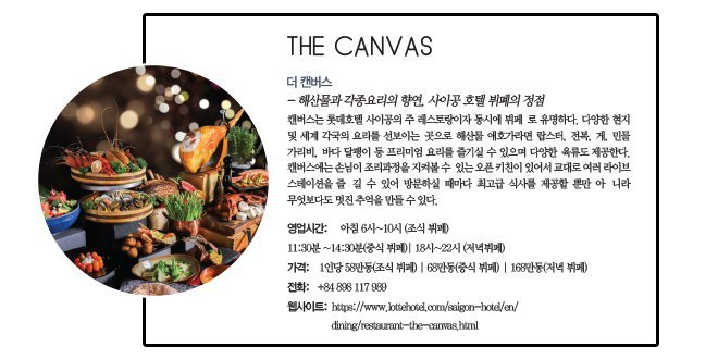 1롯데 호텔의 명성이 높은데요 롯데호텔 사이공의 대표 레스토랑인 더 캔버스와, 오티모 하우스(Italian Restaurant) 소개 부탁드립니다