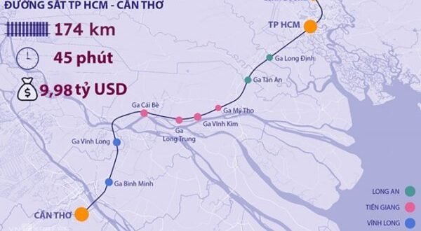 CT그룹에 따르면 호찌민-껀터 고속철도는 남부 빈즈엉성(Binh Duong)-호찌민시-롱안성(Long An)-띠엔장성(Tien Giang)-빈롱성(Vinh Long)-껀터시 구간 길이 174km, 복선(궤간 1435mm)에 12개 역사가 들어서는 여객 및 화물열차 노선으로 설계속도는 명시되지 않았다.