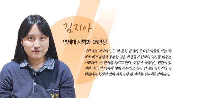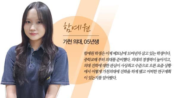새해를 맞아 꾸준히 준비하고 노력하여 입시에 성공한 호치민시한국국제학교(KIS) 학생 4명을 만나 그들의 자세한 이야기를 들어봤다. 이번호에서 만나는 학생은 최고의 스펙을 갖추었고 수도권 최고의 의대인 가천대에 진학을 했으며. 다른 학생은 한베 가정에서 자라서 불리한 환경이지만 이를 극복하고 연세대 사학과에 진학하는 학생이다. 각자 상황이 다르지만 입시를 위하여 어떤 준비했고 어떻게 진로를 결심했는지를 알아봤다.