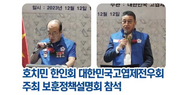 손인선 베트남한인회총연합회 회장은 2023년12월12일 오전11시 호치민 2군 소재 드마리스 뷔페에서 열린 대한민국고엽제전우회 주최 보훈정책설명회에 참석하였다.