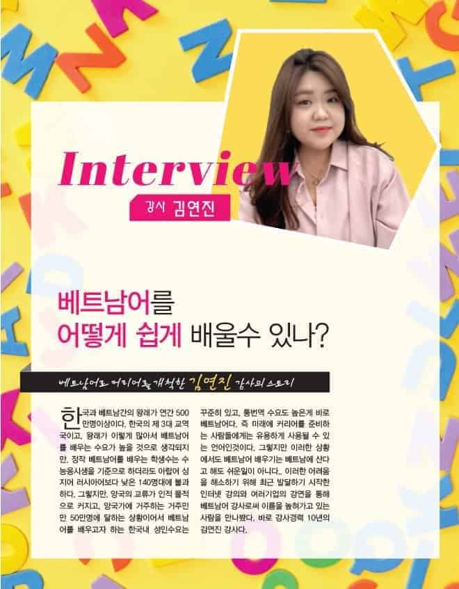 제가 귀국을 하고 나서 저도 고민을 많이 했어요. 왜냐하면 당시에 저도 20대 초중반이었고 취업을 해야 하나 뭐를 해야 하나 고민을 하던 찰나에 일단 내가 할 수 있는 게 베트남어고 하다 보니까 이것저것 찾아봤는데 삼성이나 뭐 대기업 쪽에서 그런 베트남어 강사 구인 구직이 굉장히 많더라고요. 정말 우연치 않게 강사 직업을 했는데 제가 강의를 하는 순간 너무 재미있었어요. 왜냐하면 제가 아니라고 했는데 그걸 따라하고 내가 성조를 알려주는데 그거를 같이 막 따라 노래 부르듯이 하고 막 이런 부분들이 너무 좋아서. 이거 제대로 한번 해 봐야지 해서 제가 대학원도 진학을 한 거예요. 그러니까 대학원도 처음에 진학을 하려고 했던 생각이 없었는데 강사 직업을 하다 보니까’아 내가 더 많이 배워야 내가 더 많이 알려주겠다’ 라는 생각이 들어서 조금 제대로 공부를 하고 싶어서 대학원도 다니게 됐습니다. 그래서 저는 강사로서의 직업이 너무 만족스럽고 제가 만약에 그때 당시로 다시 돌아가서 이렇게 또 해볼래요라고 한다면 저는 주저 없이 또 강사를 선택할 것 같아요.