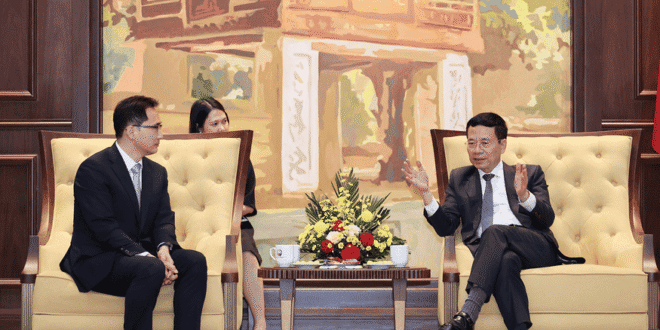 최근 베트남 정보통신부에 따르면 응우옌 마잉 흥 장관은 지난 4일(현지시간) 김우준 사장을 중심으로 한 삼성전자 대표단을 접견했다. 이 자리에는 최주호 삼성전자 베트남 복합단지장(부사장)과 베트남 관련 부처 고위급 관계자들이 대거 참석했다.