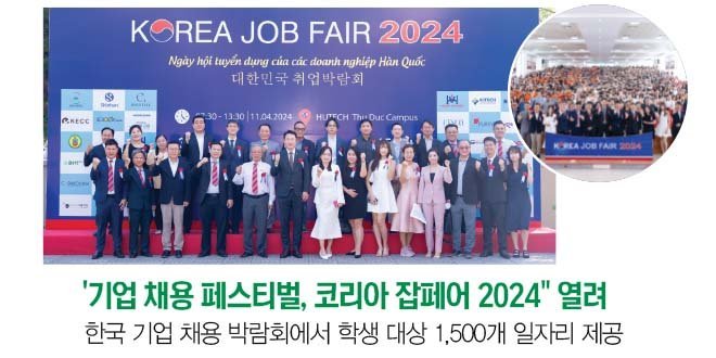 지난 4월 11일 호치민시 공과대학교(HUTECH) 비즈니스 협력 센터는 베트남-한국기술대학교(VKIT) 및 한국학부와 협력하여 ‘기업 채용 페스티벌 – 코리아 잡페어 2024’가 개최되었다. 32개 이상의 한국기업과 35개 이상의 부스가 만들어져 1,500개 이상의 일자리를 제공하는 한국 취업 박람회 2024 박람회는 HUTECH 학생들, 특히 한-베트남 관련 학과 및 한국어 전공 학생들이 한국 기업정보를 쉽게 접근하고 자신에게 적합한 취업 및 인턴십 기회를 찾을 수 있도록 도와주는 좋은 기회이다 .