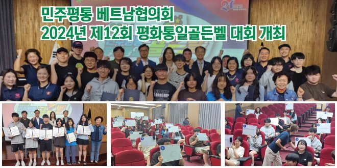 민주평통 베트남협의회(회장 신동민)는 6월 1일 토요일 9:00부터 베트남 호치민시에 위치한 호치민시한국국제학교 시청각실에서 2024년 제12회 평화통일골든벨 대회를 개최하였다. 이 행사는 올해 12회째로 베트남 호치민 한인사회의 대표적인 청소년 행사로써 청소년들에게 한반도 평화통일에 대한 필요성과 중요성을 전달하고 있는 대회이다.