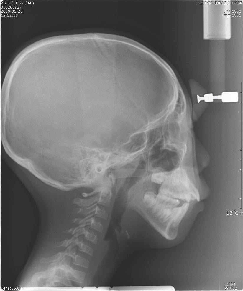 일단 턱이 작아 보이는 경우는 2가지의 경우가 있습니다. 첫번째는 아래턱은 정상인데 상대적으로 위턱이 나와서 아래턱이 작아 보이는 경우입니다. 두번째는 실제적으로 아래턱 자체가 작은 경우가 있습니다. 위의 두가지 경우 모두 II급 부정교합으로 분류되며 치료시기는 아이들의 최대 성장기입니다 <사진3>. 최대성장기는 한국 남자아이들 같은 경우 평균 만 10.5세이고 여자아이들의 경우는 평균 9세입니다. 최대성장기에 치료가 들어가는 이유는 치료기간을 짧게 그리고 효과적으로 하기 위함입니다. 아이들은 성장을 계속 하고 있기 때문에 발견 즉시 치료를 들어가면 더욱 효과가 좋을 수 있지만 전체 치료 기간은 길어질 수밖에 없으며, 비용도 많이 들고 또한 아이들도 지쳐서 동기부여가 안되기 때문에 최대성장기까지 기다렸다가 치료를 하는 것이 효율적입니다. 아이들마다 최대성장기는 다르기 때문에 정확한 최대성장기를 측정하기 위해서는 치과에 내원하셔서 X-ray 손목사진을 찍고 성장 판 분석을 해봐야 합니다.