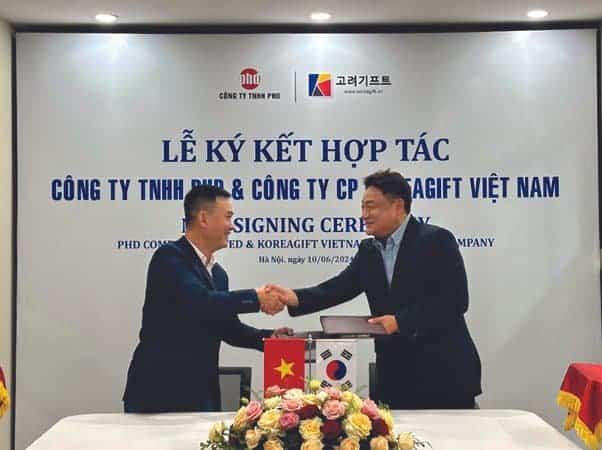 한국 판촉물 전문 업체 고려기프트는 지난 6월 10일 베트남 베이커리 프렌차이즈 “FRESH GARDEN”을 운영하고 있는 Công ty TNHH PHD 하노이 본사에서 업무 제휴식을 가졌다. 금번 협약을 통해 고려기프트는 음료수, 아이스크림, 전통 떡, 각종 k-culture fancy 제품 등 한국의 우수한 제품들을 베트남 전국에 약 100여개 매장을 갖춘 FRESH GARDEN을 통하여 판매하며 FRESH GARDE은 소매 유통만 해오던 자사의 빵/케익/음료 등의 제품의 BtoB 시장 진출 계획의 일환으로 고려기프트를 통해 베트남에 내 한국 기업에 판매할 예정이다. PHD 그룹 Ms.Thu ha회장은 “베트남의 음식인 banh mi , cake, 은 빠질 수 없는 음식이며, 곧 문화와 전통이다. 제과 전문 업체인 “FRESH GARDEN”은 좋은 재료를 이용한 고급 제품들을 한국 기업들에게 선보이고자 한다” 고 말했다. 고려기프트 베트남 서병수 대표는 “많은 매장을 갖춘 FRESH GARDEN 을 통하여 한국의 우수한 상품(k-food)과 한류(k-culture) 관련 제품을 판매하게 돼 좀더 베트남 소비자들에게 가깝게 다가가는 기회가 될 것으로 기대한다.” 고 전했다.