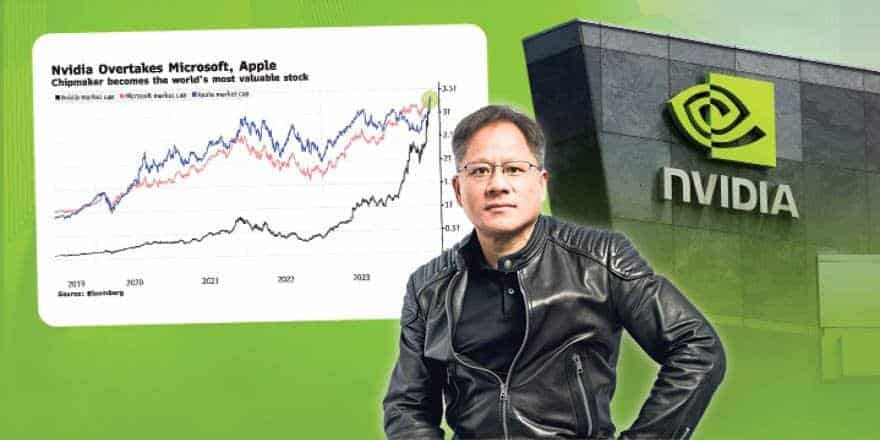그래픽 드라이버를 주로 설계하는 엔비디아의 놀라운 성장에는 2022년부터 불어 닥친 생성형 AI 열풍이 있다. 93년에 설립된 엔비디아는 초창기에는 비디오게임기에 주로 탑재되는 그래픽 칩셋(GPU)을 생산하는 회사였지만. 세계 게임시장의 성장과 더불어, 2010년경 비트코인으로 대표되는 암호화폐의 열풍으로 GPU수요가 상승하면서, 세계를 대표하는 거대기업으로의 도약이 시작된다. 그리고 코로나 팬데믹의 발생으로 메타버스 열풍과, 팬데믹 장기화로 인한 PC 수요 폭등의 파도를 타고 시가총액이 삼성전자를 넘어버리는 기록을 세운다. 그러나 이때 까지는 시가총액이 7000억 달러 수준이었지만. 최근 2년 간 전세계가 AI열풍에 휩싸이면서 엔비디아는 AI 모델 개발에 필수적인 종합 반도체 ‘AI 가속기’ 시장의 98%를 차지하게 되면서, 시가총액이 2021년 7000억 달러에서 2024년 3조 달러로 급속한 성장을 달성한다.