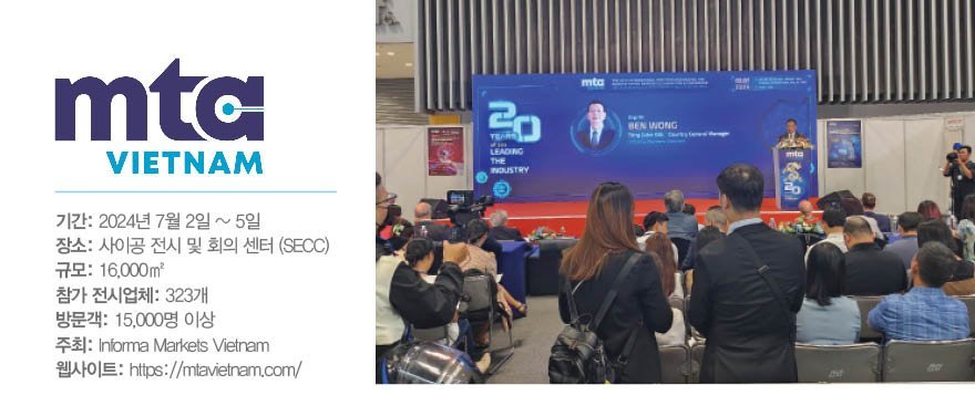 회 (MTA Vietnam 2024) 가 7월2일부터 5일까지 4일간 개최됐다. 본 행사의 20주년을 맞아 사상 최대규모로 열린 MTA Vietnam 전시회는. 15국에서 323개 업체가 참가했으며, 약 16,000명 정도의 관람객이 방문하는 성과를 올렸다.