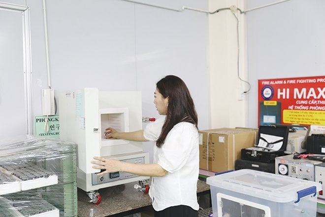 하이맥스 베트남은 회사 내 자체 검정실이 있어 소방 자재에 대한 테스트를 자체적으로 실시하고 있습니다. 소방 검정기계는 한국검정기술협회에서 사용하는 기계와 동일하며 베트남법령 기준에 맞는 검정기계도 자체 제작하여 베트남 소방국과 같이 베트남 환경에 맞게 검정 기준을 확립할 수 있도록 같이 연구하고 있습니다. 또한 자체 연구실이 있어 자재 이상 시 바로 대처 가능하여 소비자가 만족할 수 있도록 최선을 다하고 있습니다.