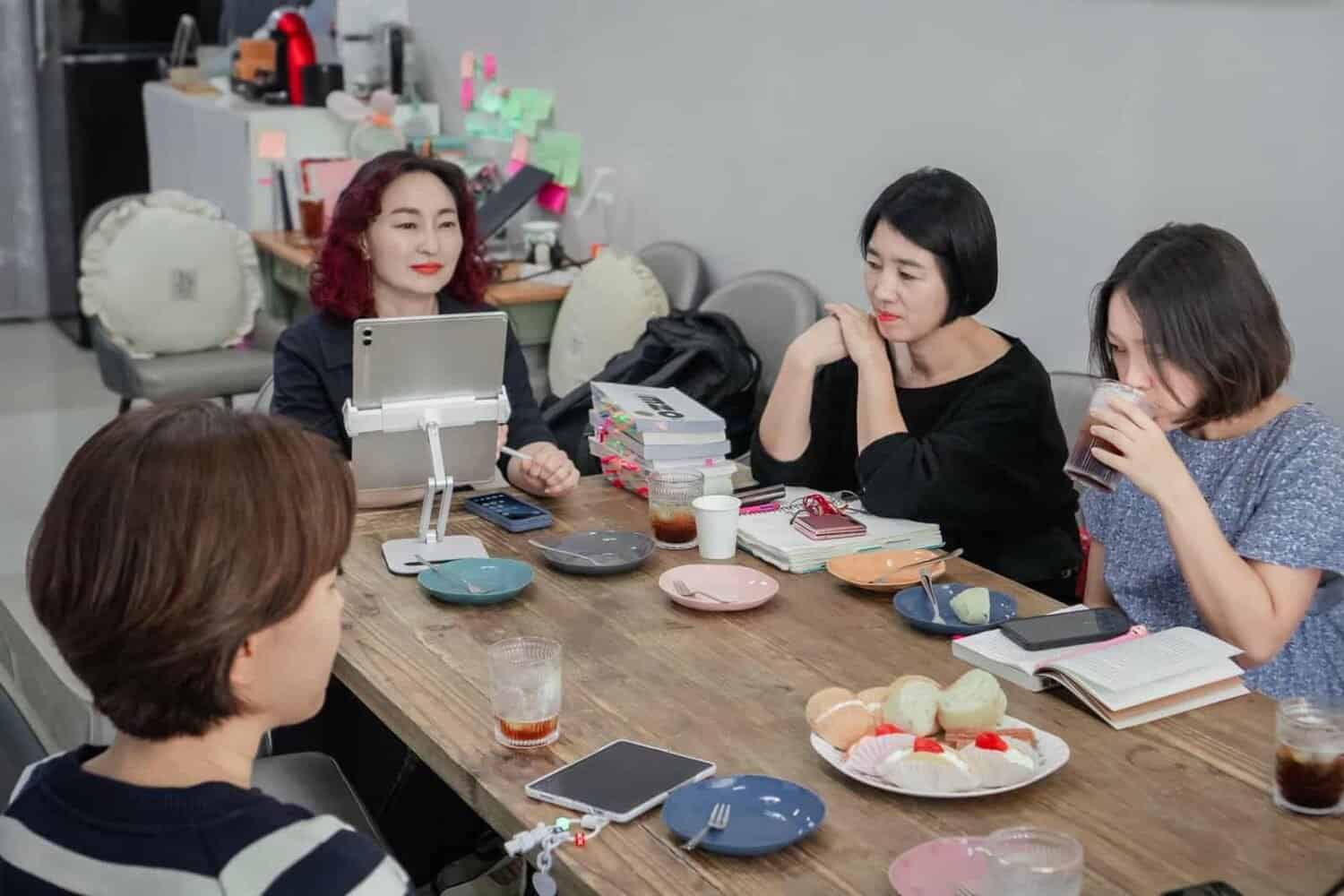 먼저 커피와 간식으로 담소를 나누면서 서로에 대한 이해와 상호작용을 통해 수업이 원활하게 진행될 수 있도록 관계를 형성합니다. 그런 다음 지난 일주일 동안 감사했던 일을 서로 공유하고 축하해 주며, 현재 자신의 감정을 한 단어로 표현해 보는 시간을 30분 정도 가집니다. 그 다음 책에 관한 기본 지식과 요약으로 워밍업하고, 본격적으로 책에 관한 이야기를 나눕니다.