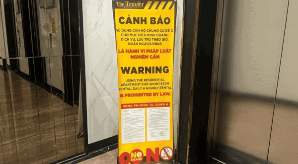 지난 1일 발효된 개정 주택법은 비거주 목적의 아파트 사용을 금지하는 규정을 유지했다. 이에 따라 호찌민 시내 주요 아파트 단지들은 단기임대 금지 안내문을 내걸고 있다. 빈홈센트럴파크의 한 동에는 “에어비앤비와 같은 단기임대 목적의 아파트 사용 금지”라는 안내문이 붙어있다.