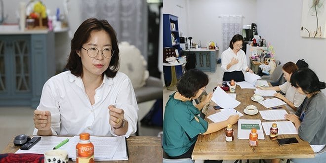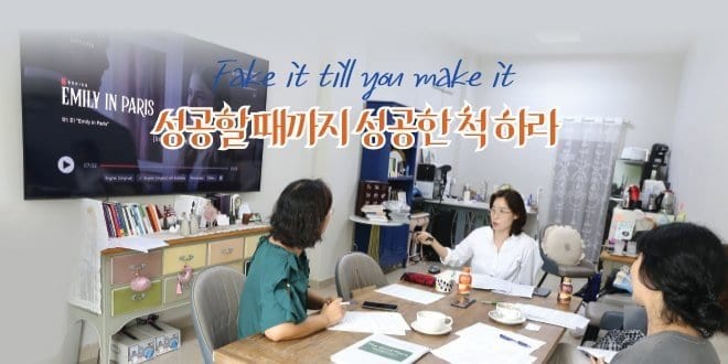 영어 모임 ‘미드영어’는 영어와 드라마를 매개로 고립감을 극복하고 일상의 한계를 넘고자 하는 이들의 모임이다. 이 모임은 단순한 회화 레슨을 넘어선다. 지금은 고작 4명의 회원이지만 소수이기에 학습열기는 더욱 뜨겁다. 이들은 영어 미디어를 활용한 수업을 통해 대사 연습과 상호간의 대화를 통해 얻은 통찰을 자신의 삶에 적용한다. 영어를 유창하게 구사하는 것이 목표이지만 그에 미치지 않다고 해도 그 과정에서 얻어지는 언어에 대한 자신감은 이국에서의 대화에 공포감을 없애 준다. 혹시 주부들이 모여 잠담으로 시간을 보내는 것은 아닌가 하는 우려가 있을 수도 있지만 실재로 방문한 그들의 학습현장은 너무나 진지하고 뜨거웠다. 수업은 긴장을 풀고 아이스브레이킹을 하는 것으로 시작한다. 참가자들은 지난 1주일간 있었던 일들을 영어로 이야기하며 대화의 물고를 뜬다. 이후 넷플릭스 드라마 ‘에밀리, 파리에 가다’를 시청하며 미디어 수업이 진행된다. 이 과정에서 중요한 단어와 문장을 배우게 된다. 미디어 수업이 끝나면 모임의 리더인 박민경 선생님이 만든 스크립트 교재로 복습을 한다. 강습의 질은 웬만한 영어학원을 뛰어넘는 수준이었다. 이는 단순히 영어를 배우는 것을 넘어, 실재 생활에서 활용할 수 있는 실용적인 학습 방식을 제공하고 있음을 보여준다.