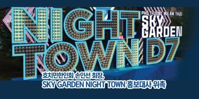 2024년8월30일(금) 오후6시 호치민 7군에 위치한 스카이가든 중앙공원에서는 Sky Garden Night Town D7 개막식이 개최되었다. 개막식에는 손인선 호치민한인회 회장과 홍승표 상근부회장이 함께 참석하여 야외부스에 참가한 업체들을 돌아보며 격려하였다.