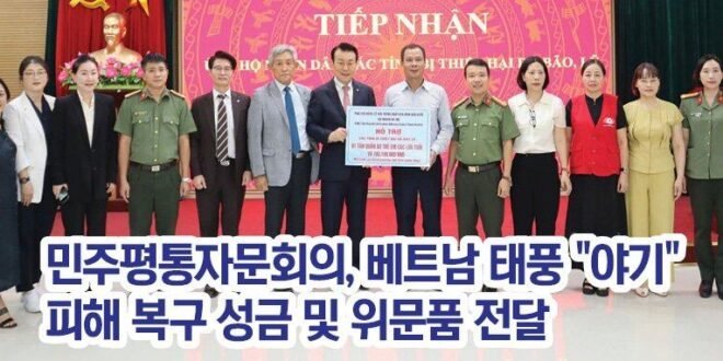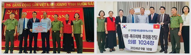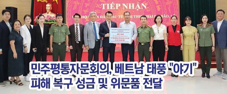 민주평통자문회의 아태지역회의(부의장 고상구)는 2024년 9월 18일 오전 10시 해외공공외교의 일환으로 태풍 “야기”와 수해로 큰 피해를 입은 베트남 북부 지역 주민들을 돕기 위하여 베트남 하노이시 조국전선위원회에 피해 복구 성금 및 위문품을 전달하였다. 이번 전달식에는 베트남협의회 자문위원들이 정성껏 모은 피해 복구 성금과 하노이지회 임동섭 지회장이 위문품으로 의류 1024장을 기부하여 재난 피해자들에게 실질적인 도움이 될 것으로 기대된다. 아태지역회의 고상구 부의장은 마이 뚱 럼 (Mai Tùng Lâm) 남 뜨리엠구 공안 부국장에게 하노이 미딩 지역에 거주하는 대한민국 동포들의 안전을 특별히 당부하였으며, 향후에도 이 지역의 대한민국 동포들의 안전을 보장하기 위한 지속적인 관심과 협력을 요청하였다.