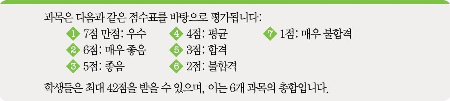 ◆ 과목 점수(최대 42점) + ( EE 점수+ TOK 점수 (최대 3점)) = 총합 (최대 45점)