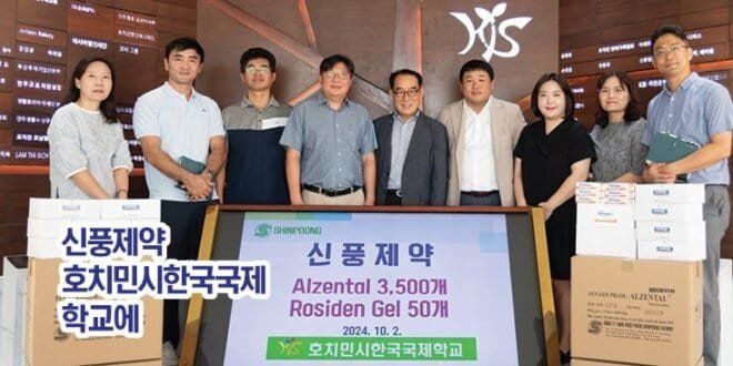신풍제약은 호치민시한국국제학교와 지난 2022. 11. 18. 『학교에 제공 가능한 의약품』을 기부하는 MOU를 맺은 후 1년에 2번씩 호치민시한국국제학교에 꾸준히 의약품을 후원하고 있으며, 특히 ALZENTAL 구충제의 기부는 누적 15,600상자에 이른다.