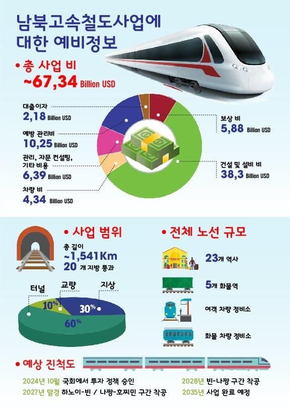 2024년 남북고속철도 사업의 시작이 발표되면서 2045년까지 93조원의 기회가 베트남 기업만이 아니라 건설기업들에게도 잠재적으로 열리게 됐다. 베트남 정부의 계획대로라면 본 프로젝트는 지금으로부터 약 3년 이내로 착공이 될 예정이다.
