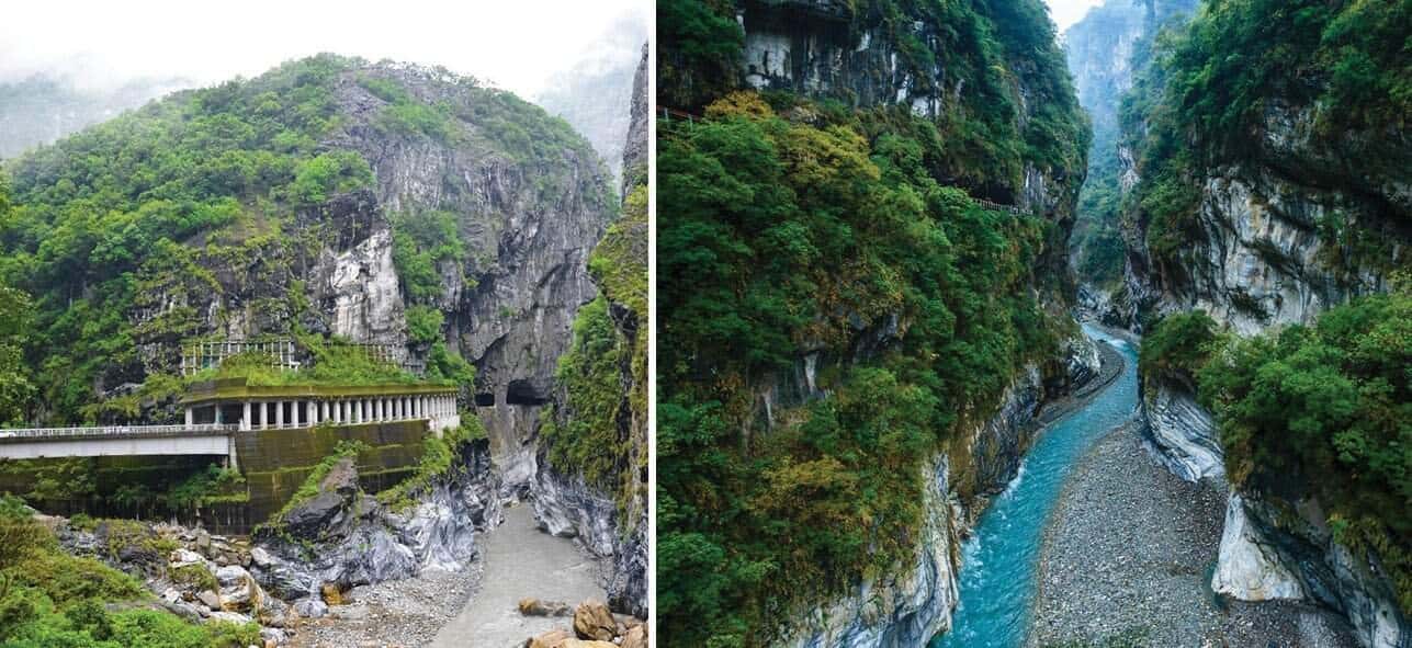대만 동부에 위치한 세계적인 국립공원인 타이루거 국립공원은 장대한 대리석 협곡과 더불어 해저 침전물과 압력으로 변형된 가파른 절벽이 자연의 신비로움을 전해준다. 공원 곳곳에 다양한 트레일 코스와 탁 트인 해안 전망의 뷰 포인트가 있어, 아름다운 자연경관을 감상하며 트레킹을 즐길 수 있다. 수도인 타이페이에서 약 3시간 정도 떨어져 있는 화련시에 위치해 있으며, 대중교통으로 오갈 수 있으나 그렇게 하면 당일치기 관광은 어렵다.