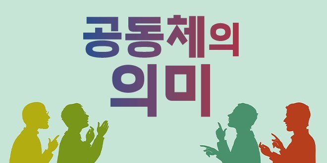 우리는 많은 공동체에 포함되어 살아갑니다. 가족으로 시작해서 학연으로는 동창회가 있겠고, 같은 직장에서 공통의 경험을 공유하는 직장 공동체, 자신이 살아가는 지역에 속한 지역 공동체, 종교로 맺어진 종교 공동체 등, 원하든 아니든 사회의 일원으로 살아가는 이상 수많은 공동체의 일원으로 소속되어 있는 셈입니다.