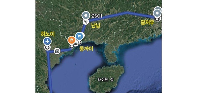 베트남에서 중국으로 들어가는 루트는 대표적으로 두가지를 선정할 수 있다. 사파근처 라이까이를 거쳐 허까우로 넘어가는 서쪽 루트와 이번에 본가지가 택한 몽까이- 동싱으로 들러가는 동쪽루트가 있다. 본 기자가 이번 여행에서 라오까이(Lao Cai)-허커우(Hekou) 루트 대신 몽까이 동싱시 방면의 동쪽루트를 선택한 이유는 명확했다. 동싱시에서 난닝(Nanning)까지 중국이 자랑하는 소속철도가 연결되어 있어 이동이 훨씬 수월하기 때문이다.