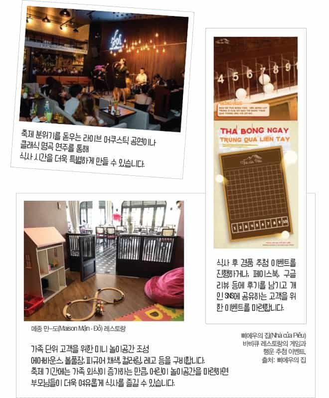 • 손님들이 SNS에 체크인하고 후기를 남기면 할인권이나 디저트로 보답하기