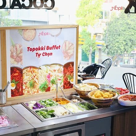 한국 떡볶이 역사의 시작점은 1953년 서울 신당동의 한 노점이었다. 마복림 할머니가 연탄불 위 양은냄비에서 시작한 고추장 떡볶이는 한국인의 대표적인 길거리 음식이 되었다. 고추장과 춘장을 버무린 소스에 떡과 야채를 넣고 끓이다가, 후에 라면사리를 추가하면서 오늘날 우리가 아는 즉석 떡볶이의 원형이 완성되었다. 이러한 전통의 맥을 잇되 현대적으로 재해석한 것이 바로 Joopii(조피) 떡볶이 뷔페다. 조피는 신당동 즉석 떡볶이의 핵심인 ‘개인 냄비에서 직접 조리해 먹는 방식’을 그대로 가져오되, 여기에 현대적인 감각과 베트남 현지의 취향을 더했다.