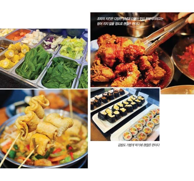토핑 선택의 자유로움이 돋보인다. 라면과 야끼만두, 계란, 각종 야채, 어묵 등 전통적인 떡볶이 토핑은 물론, 돼지고기와 문어, 다양한 버섯류까지 선보이며 고객들의 취향을 저격한다. 여기에 한식의 인기 메뉴인 치킨과 김밥, 잡채 등을 사이드로 구성해 한 끼 식사 그 이상의 가치를 제공하면서 폭발적인 인기를 누리고 있다고 한다.