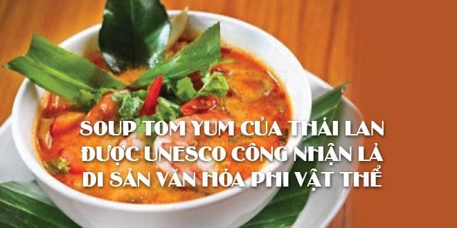 Món súp tôm chua cay nổi tiếng “tom yum kung” của Thái Lan vừa chính thức được UNESCO ghi danh vào Danh sách Di sản Văn hóa Phi vật thể đại diện của Nhân loại. Quyết định này được công bố ngày 4/12 tại phiên họp lần thứ 19 của Ủy ban Liên chính phủ về Bảo vệ Di sản Văn hóa Phi vật thể tổ chức tại Asuncion, Paraguay.