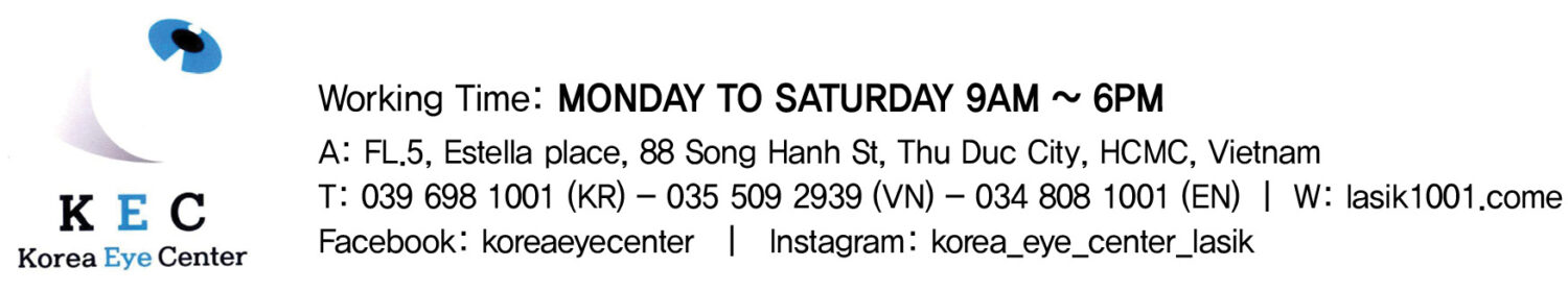 코리아 아이 센터는 베트남 한인안과 최초 라식수술 허가 승인 안과로. 최첨단 검사장비와 수술장비를 보유하고 있는 안종합검진센터입니다. 주요진료과목은 라식수술과 같은 시력교정수술분야이며. 시력검사, 드림렌즈, 노안, 안구건조증, 다래끼와 같은 일반 안질환 진료도 가능합니다. 한국어,베트남어,영어 통역사가 상주하고 있고, 코리아아이센터 내 약국과 안경점이 입점 되어 있어 원스탑 진료시스템이 가능합니다. 약국과 안경점은 꼭 코리아아이센터 진료를 받지 않아도 이용이 가능하도록 시스템화 해 놓았습니다.