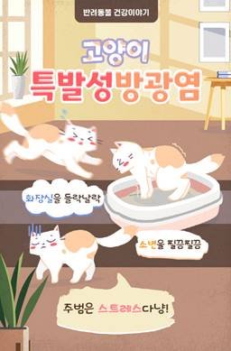 방광염은 고양이를 화장실 노예로 만든다. 자꾸만 화장실에 가고 싶은데, 가도 시원하지 않은 고통스러운 상황이 계속된다. 소변 색이 탁해지거나 피가 섞여 나올 수도 있다. 심지어 평소에는 절대 실수하지 않던 고양이가 이불이나 소파에서 실수를 하기도 한다.