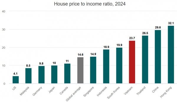 이날 가격비교 플랫폼 넘베오(Numbeo)에 따르면, 작년 베트남의 가구소득대비 주택가격비율(HPR)은 23.7배를 기록했다.
