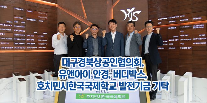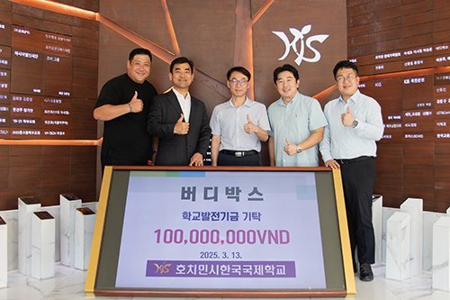 호치민시한국국제학교(교장 김명환)는 2025학년도 새학년도 시작과 함께 대구경북상공인협의회,유앤아이 안경과 골프동호회 버디박스가 각각 1억 동씩, 총 3억 동을 발전기금으로 기탁해 호치민 내 한국 사회에 대한 기여를 이어가고 있다고 밝혔다.