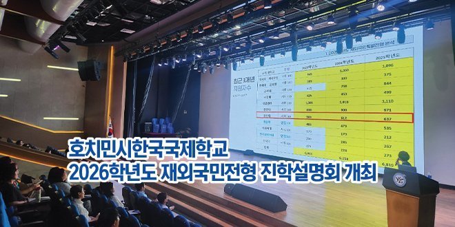 호치민시한국국제학교(교장 김명환)는 2025년 3월 15일(토) 본교 가온홀에서 10~12학년 학부모님을 대상으로 ‘2026학년도 재외국민전형 진학설명회’를 개최하였다. 이번 설명회에는 총 386명의 학부모가 참석하여 높은 관심을 보였다.