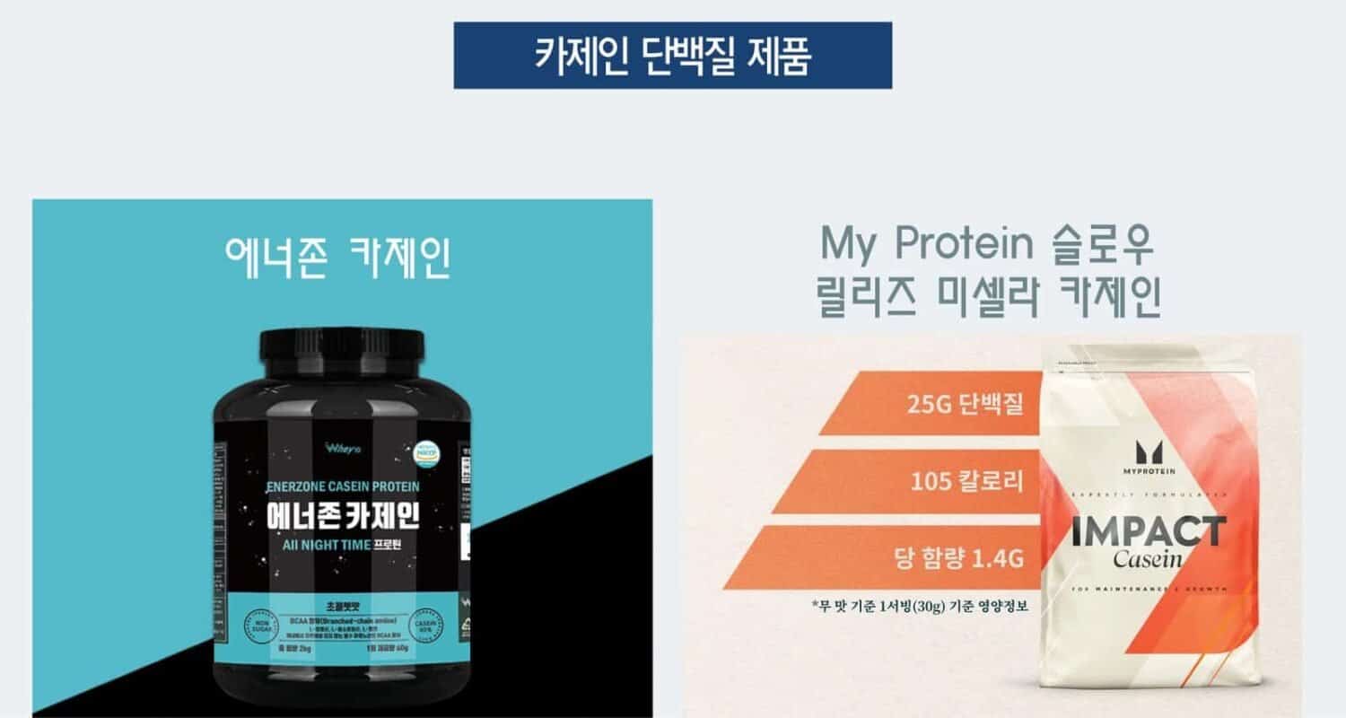 우유에서 추출한 또 다른 단백질로, 유청단백질보다 소화 흡수 속도가 느리다. 장시간 지속적으로 아미노산을 공급하기 때문에 취침 전 섭취하면 효과적이다.