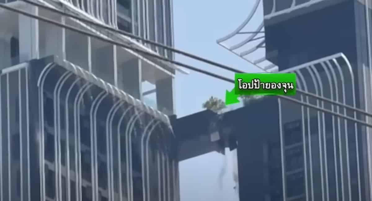 태국 언론에 공개된 영상을 보면 두 건물을 연결하는 구름다리가 두 동강 나면서 파편이 떨어져 내린다. 다리가 끊어지자 건물이 통째로 크게 흔들린다.