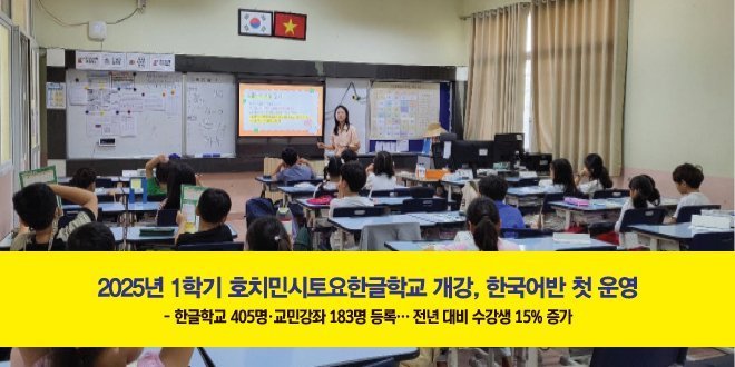호치민시한국국제학교가 운영하는 호치민시토요한글학교가 2025년 1학기 운영을 시작했다고 24일 공개했다.