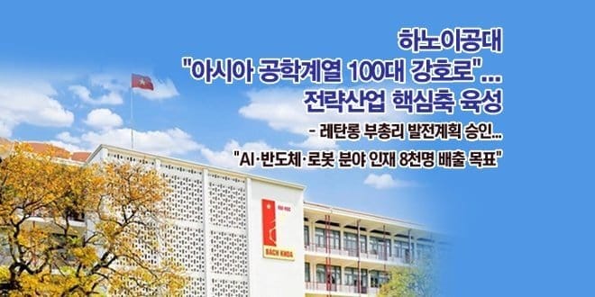 베트남 정부가 하노이과학기술대(HUST)를 2045년까지 아시아 100대 명문으로 육성하는 계획을 발표했다고 Vnexpress지가 28일 보도했다. 이날 베트남 정부는 레탄롱 부총리가 하노이공대의 장기 발전계획을 최종 승인했다고 밝혔다. 이번 계획은 하노이공대를 공학기술 분야 아시아 최고 수준의 교육기관으로 도약시키는 내용을 담고 있다. 대학은 인공지능, 사이버보안, 반도체, 로봇자동화, 첨단소재 등 베트남의 전략산업 발전을 이끌 핵심 인재 양성기지 역할을 맡게 된다. 계획에 따르면 2030년까지 교수진의 85%를 박사급으로 채우고, 이 중 30%는 정교수급으로 끌어올린다. 외국인 석학도 10%까지 확보한다. 전체 교육과정 4분의 1 이상은 영어로 진행된다.