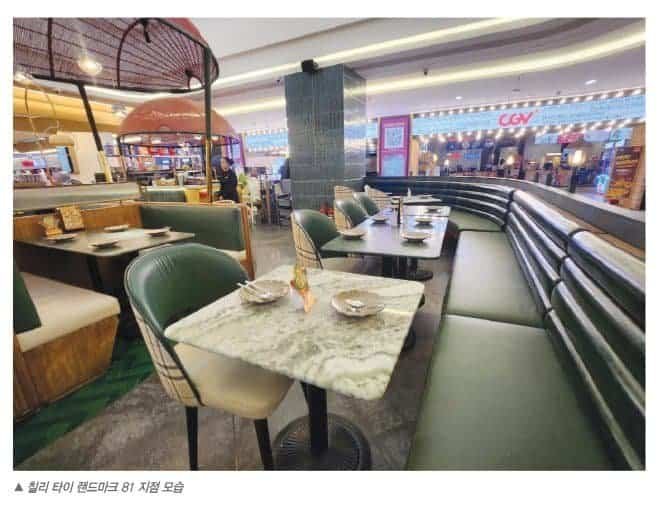 호찌민시 빈탄군 Vinhome Central Park 랜드마크 81 쇼핑몰 지하 1층. 화려한 쇼핑 공간 사이에서 푸른 간판이 눈에 띈다. ‘칠리 타이’라는 이름의 이 태국 레스토랑은 지난 1년간 조용히, 그러나 강하게 호찌민 미식 씬에 자리잡았다. 쇼핑몰 레스토랑이라는 선입견을 깨고 정통 태국 요리의 진수를 보여주는 곳이다. 랜드마크 81은 호찌민에서 가장 높은 건물로, 쇼핑과 엔터테인먼트의 중심지다. 이곳의 B1층은 식당가로 유명한데, 그중에서도 ‘칠리 타이’는 단연 돋보이는 존재감을 드러낸다. 쇼핑몰 내부라는 환경적 제약에도 불구하고, 이 레스토랑은 태국의 분위기를 최대한 살려낸 인테리어와 태국 전통 요리의 향과 맛으로 방문객들을 맞이한다.