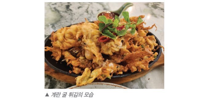 아울러 태국에서 요즘 많은 화제가 되고 있는 화교요리중 하나인 계란 굴튀김도 이곳에서 즐길만한 메뉴중 하나다, 계란과 전분가루를 섞은 튀김옷을 입혀서 만든 본 요리는 영양에서도 만점인데다, 굴을 안전하게 먹을 수 있어서 인기가 높다.