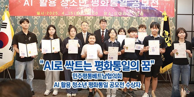 민주평통베트남협의회가 주최한 ‘AI 활용 청소년 평화통일 공모전’에서 참신한 아이디어로 수상의 영예를 안은 강현수, 배서진 학생을 만나, 공모전 참가 소감과 평화통일에 대한 생각을 들어보았다.
