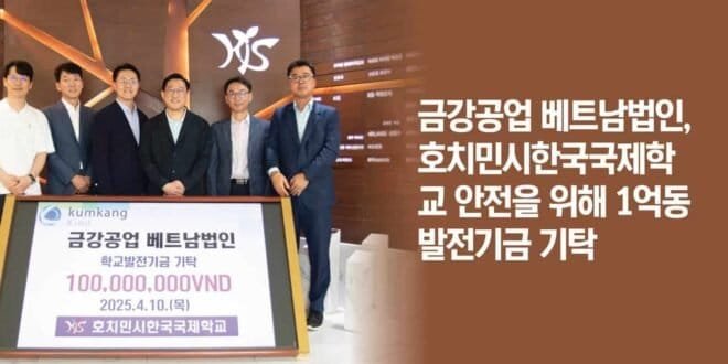 금강공업 베트남법인(대표이사 전재범)은 지역 사회와의 상생을 위한 사회공헌 활동의 일환으로, 호치민시한국국제학교의 시설 보수 및 확충을 위해 발전기금을 기탁하였다.