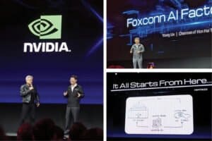 기조연설 도중 엔비디아 젠슨 황 CEO가 깜짝 등장해 참석자들을 놀라게 했다. 젠슨 황은 “AI는 단순한 기술이 아니라 산업 그 자체”라며 “폭스콘이 AI 팩토리로 수조 달러 규모의 새 산업을 창조하고 있다”고 치켜세웠다.