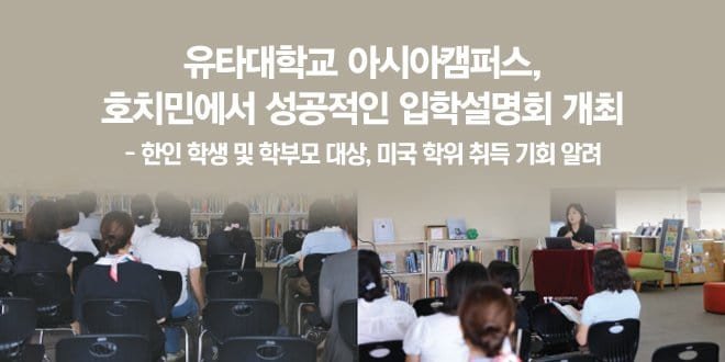 유타대학교 아시아캠퍼스 관계자는 “이번 호치민 설명회를 통해 베트남에 거주하는 우수한 한인 학생들이 글로벌 경쟁력을 갖춘 인재로 성장할 수 있는 좋은 기회를 알리게 되어 기쁘다”며, “앞으로도 더 많은 학생에게 유타대학교 아시아캠퍼스의 문을 활짝 열어둘 것”이라고 밝혔다.