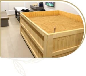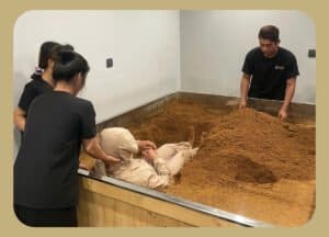 깨끗한 찜질복으로 갈아입고 본격적으로 효소찜질을 시작했다. 거대한 편백나무 욕조 안에는 쌀겨와 편백 톱밥이 섞인 부드러운 효소 재료가 가득 담겨 있었고, 그 위로 피어오르는 은은한 김이 마치 생명체의 숨결처럼 느껴졌다.