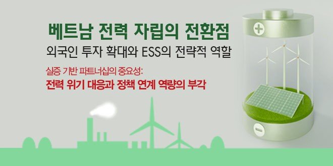 결국 베트남 ESS 시장에서 필요한 것은 기술 그 자체가 아니라, 정책-시장-운영을 아우르는 실증 기반 파트너십이며, 이러한 역량을 갖춘 기업만이 향후 시장에서 신뢰받는 핵심 주체로 성장할 수 있을 것이다.