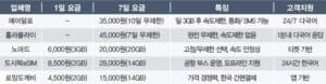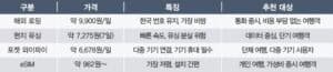 eSIM 업체별 요금 비교표
